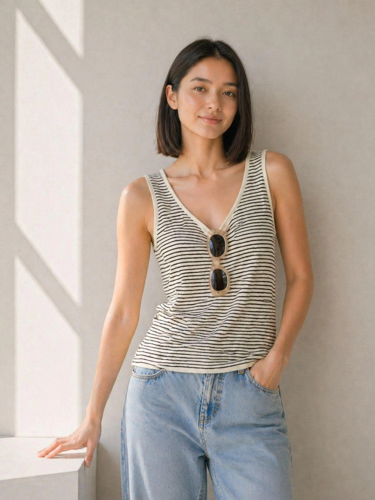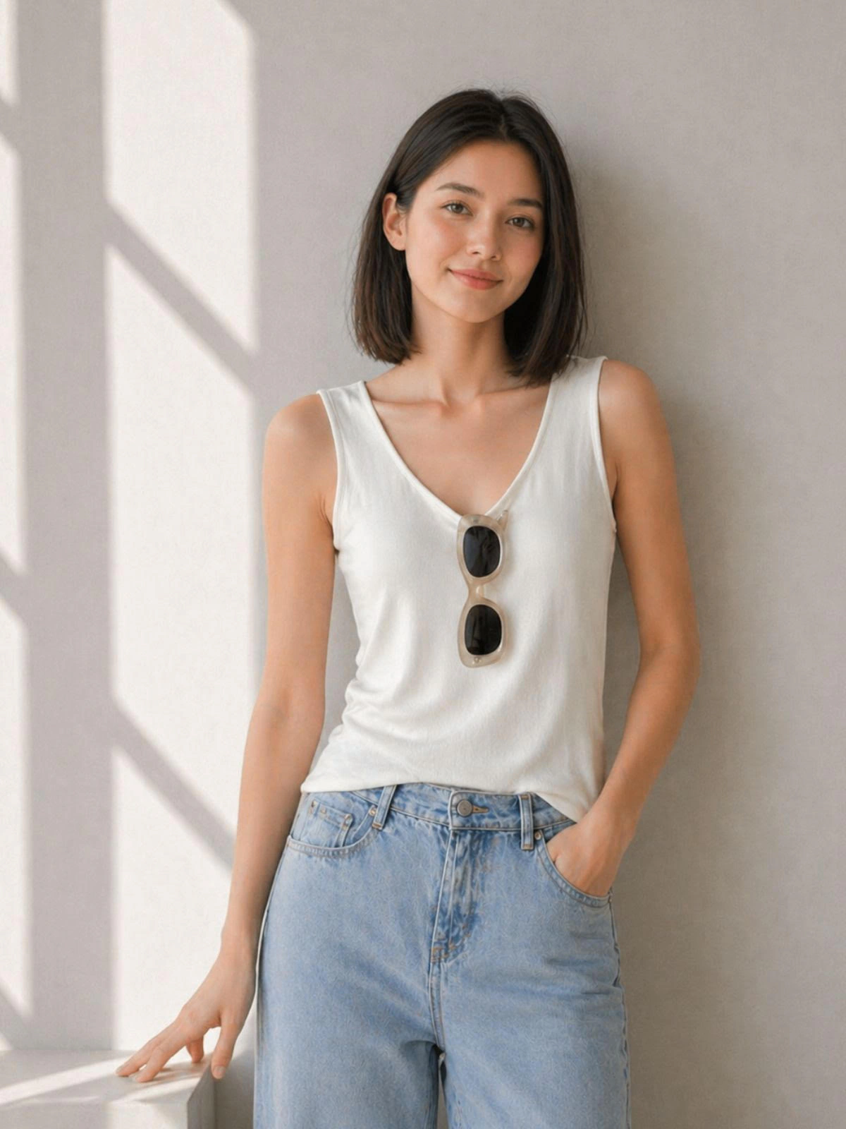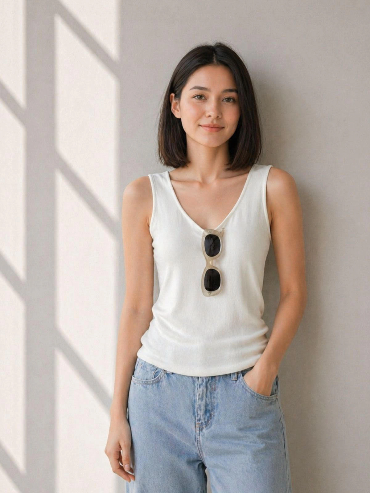 背心剪裁,呈現俐落感