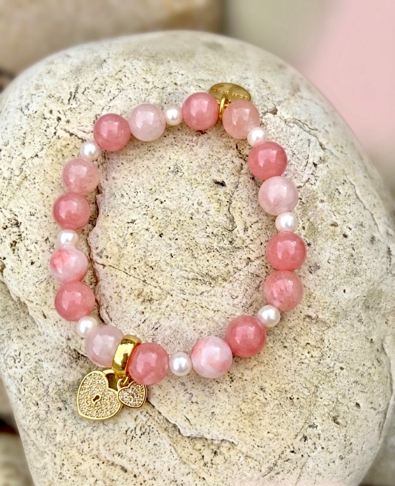 這不僅是一件飾品,更是一份隨身的心靈護佑。源自海洋的粉紅珊瑚自古象徵著永恆的幸福與生命力,其柔和的能量能安撫急躁的情緒,帶來內心的寧靜。白色系石種則代表著淨化與新生,幫助配戴者過濾外界紛擾,回歸純真。整件作品透過「心心相映」的視覺意象,將「守護、理解與陪伴」的溫暖情感實體化,無論是作為母女間的深情聯繫、伴侶間的甜蜜承諾,或是自我療癒的象徵,都能傳遞出最真摯的祝福與愛。