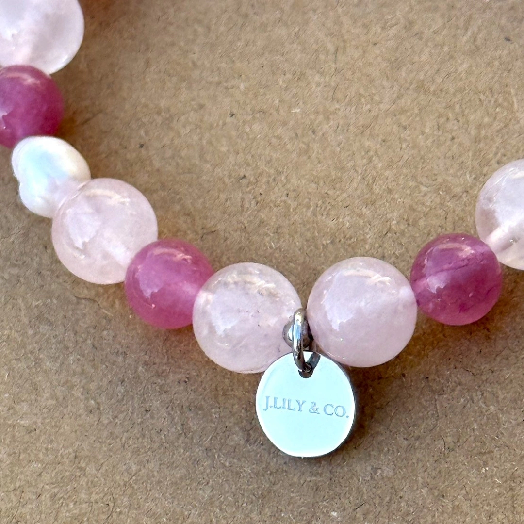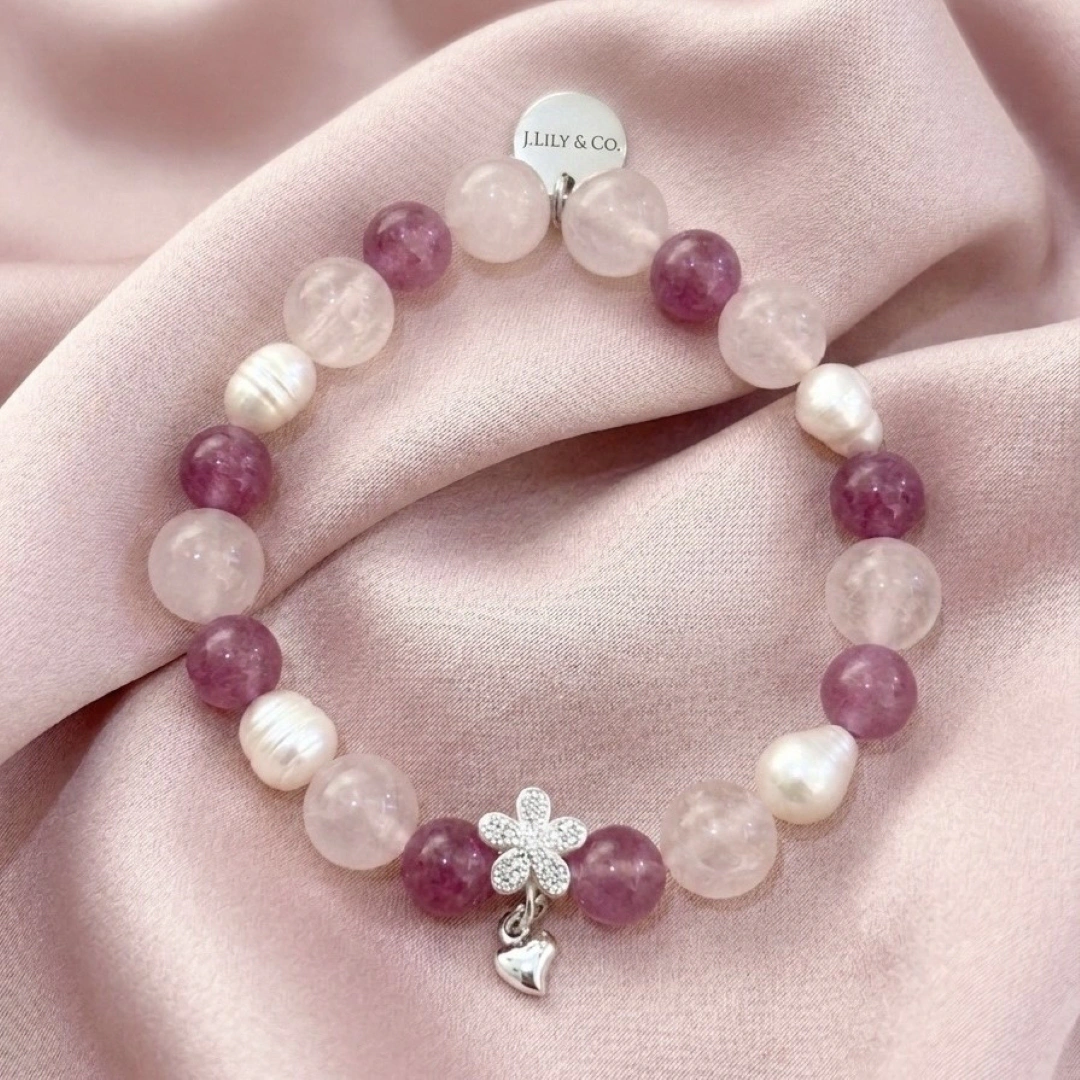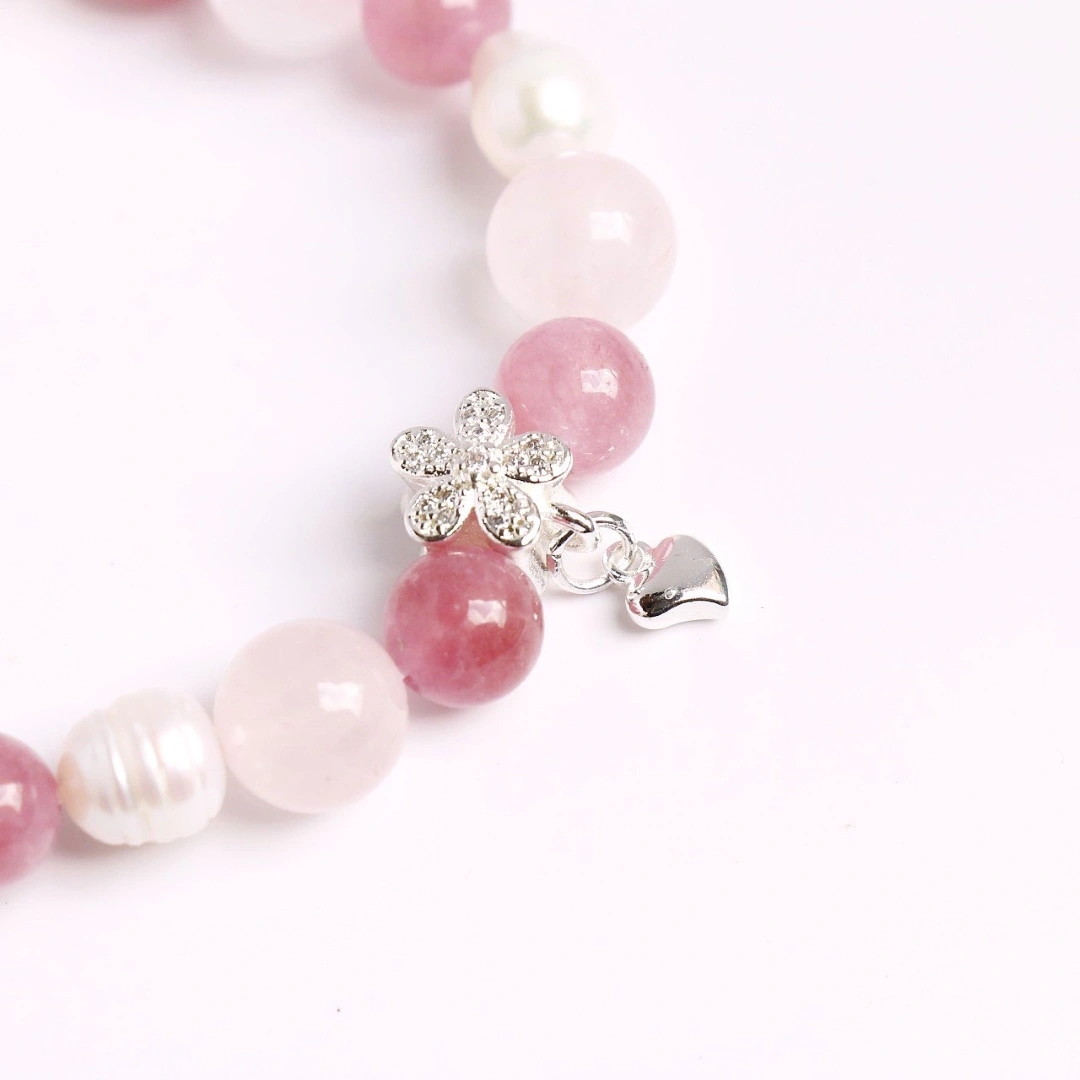 這是一件象徵「愛與療癒」的隨身珠寶。粉晶被譽為愛情之石,能舒緩心靈壓力、增進好人緣與自信心;草莓水晶則象徵著喜悅與正向的能量,幫助配戴者散發內在的魅力。珍珠在東方與西方文化中皆代表著「珍視」與「圓滿」,與花朵造型吊墜結合,寓意著「生命如花般燦爛綻放,心靈永遠被愛滋養」。戴上它,不僅是美感的裝飾,更是提醒自己溫柔對待世界,並值得被世界溫柔以待。