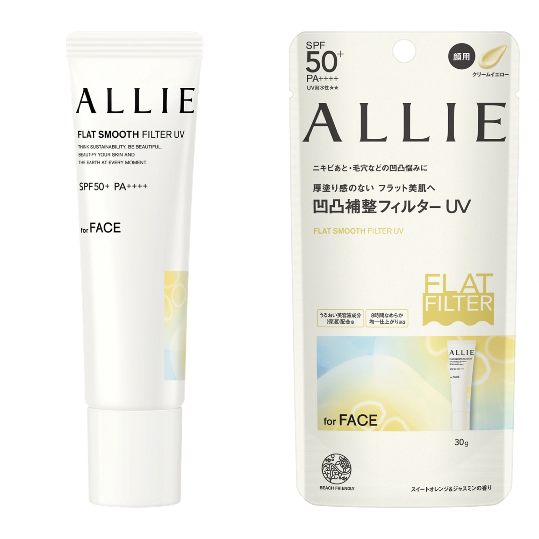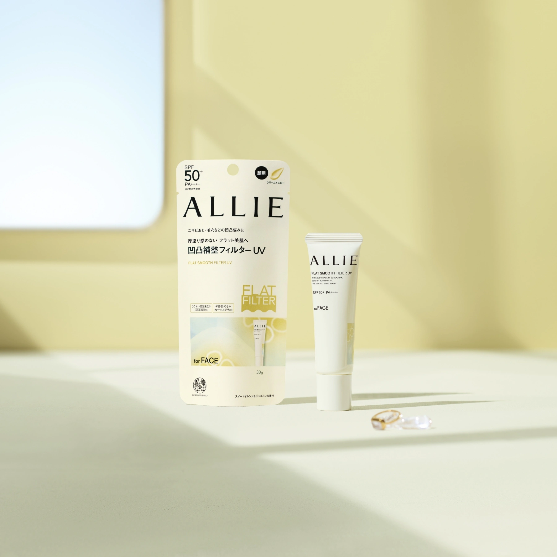ALLIE全新《持采濾鏡修妍UV防曬乳》擁有SPF50+/PA++++最高防曬規格,預防肌膚曬傷、曬老、曬出斑點;「平滑美肌塗膜配方」一抹撫平粗大毛孔、痘疤及表面凹凸,打造光滑無瑕膚質;質地水感清爽,抹在肌膚上保濕不厚重,在塗抹足量防曬的情況下,不但可柔焦毛孔也不易起屑!