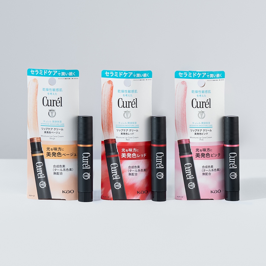 Curél珂潤全新#潤彩小黑管《潤浸保濕光透勻彩潤唇膏》三款顏色都好看:「莓果紅」日本大熱賣、「櫻花粉」打造可愛甜美少女感,「杏桃裸」帶出溫柔好氣色,可隨著衣著、場合搭配,更能隨心情選擇,單擦保濕雙唇又能提亮顯色,成為乾敏肌女孩化粧包裡的固定新班底,隨時隨地擁有水潤飽滿、自然明亮的唇妝!