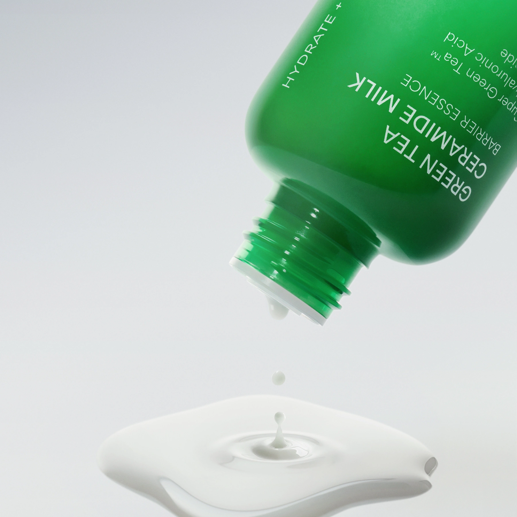 牛奶水精華不只補水,更具備強大的修護實力,富含「綠茶神經醯胺」修護肌膚保濕屏障,實測提升屏障力達+119.8%* ;搭配9種玻尿酸與維他命B3,養成平滑透亮膚質,還能舒緩泛紅不適、減少脫屑狀況 ;配方低敏溫和、不致粉刺,無添加香料等刺激成分,敏弱肌、痘痘肌都能安心使用,舒服養成細緻水嫩的理想肌膚狀態 。