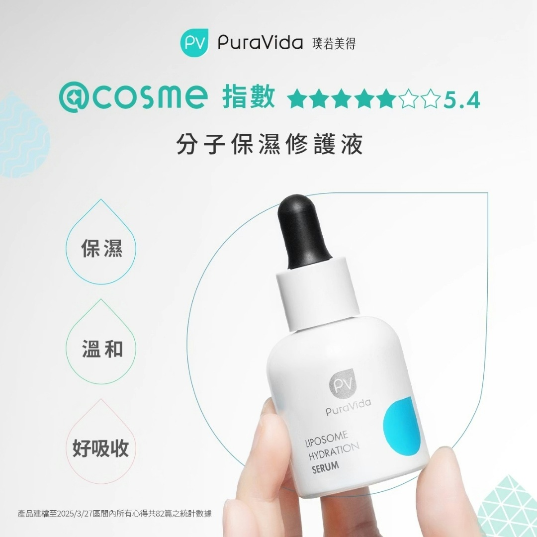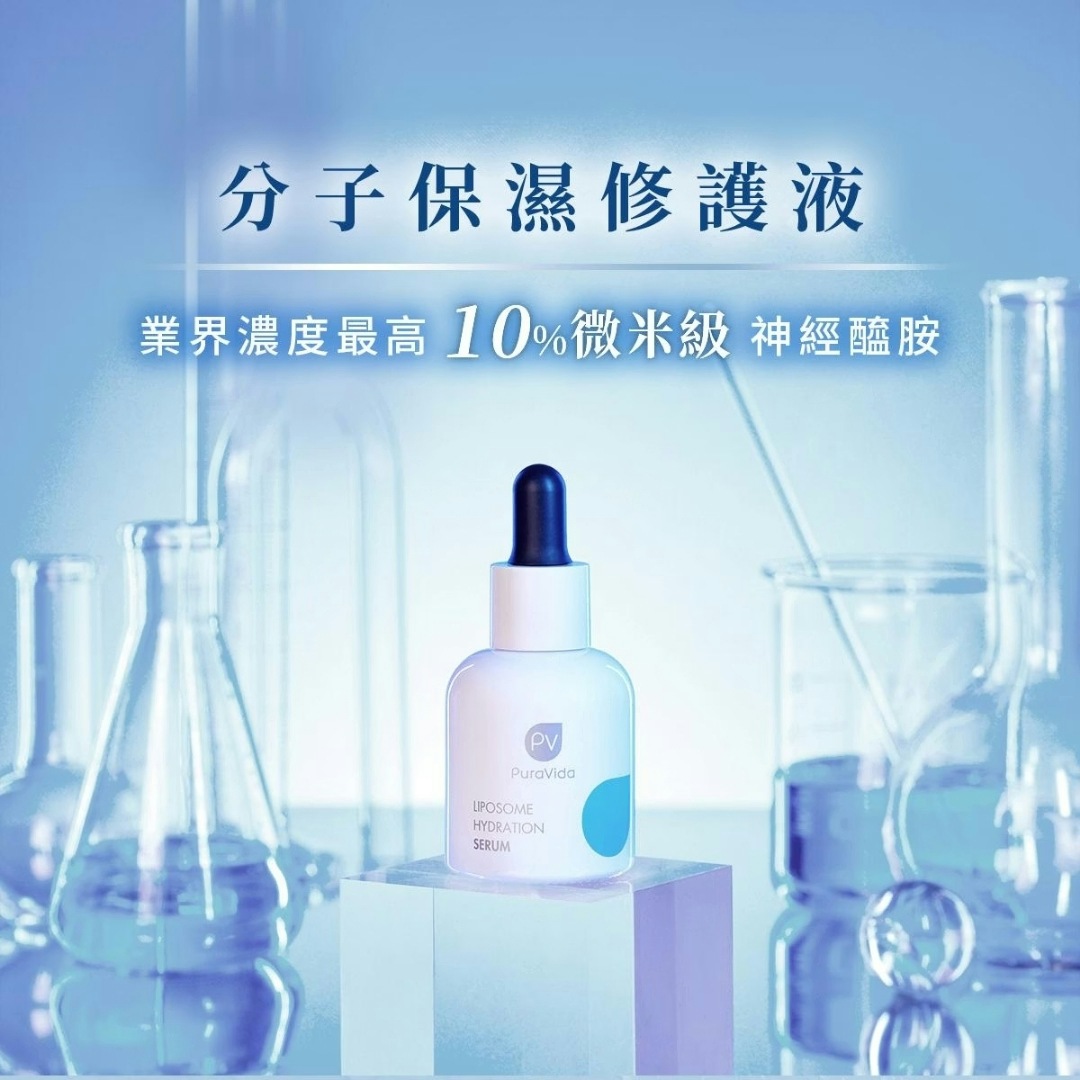 台灣奇士美全新科研推出「PuraVida璞若美得」,採用日本特殊製程「鑽石3D網科技」將保養成分的保濕小分子變得更小了,一抹就能把10%高濃度「四重分子釘(Ceramide)」直送肌底,乾燥緊繃、敏感不適、初老細紋通通有感改善,呈現健康透亮的水光肌。