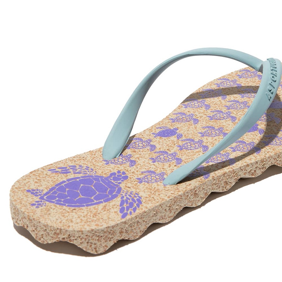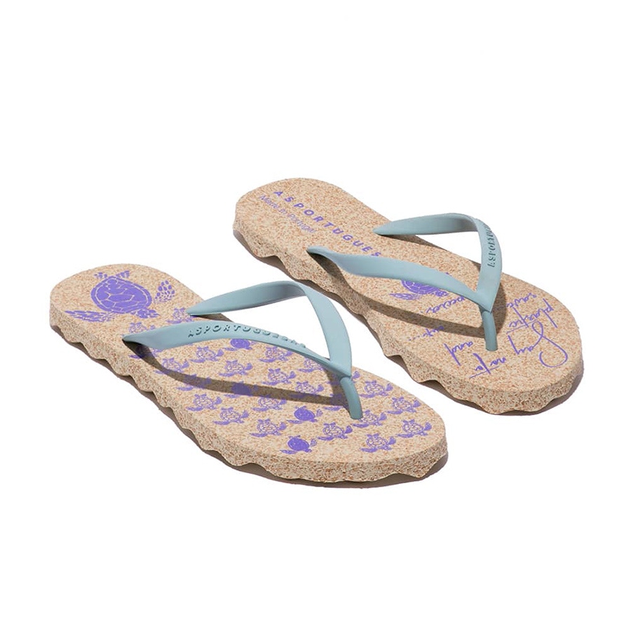 (女鞋)TURTLE 軟木塞夾腳拖-自然/天空藍